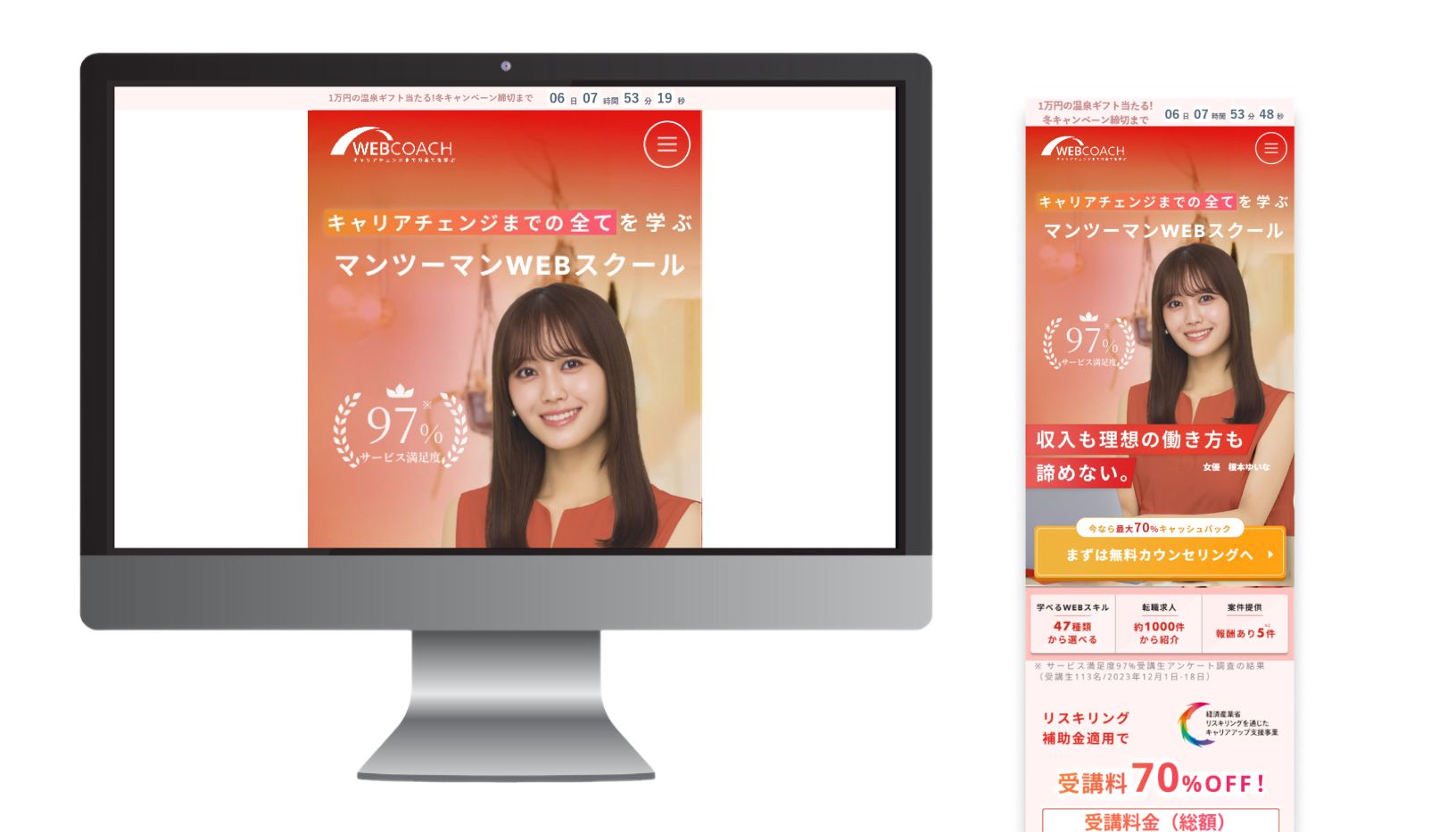 WEBCOACH は、 キャリアチェンジまでの全て を学び理想の”収入と働き方”、どちらも叶えるためのマンツーマンWEBスクール です。